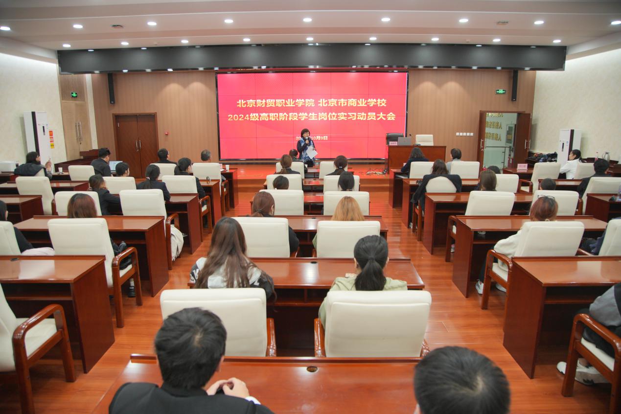 为深入贯彻《职业学校学生实习管理规定》,全面落实“高质量实习促进高质量就业”的总体要求,10月9日上午,北京市商业学校2024级高职阶段学生岗位实习动员大会在学术报告厅举行。校长助理蒋舒雅,财会经济系、商贸信息系、学生处、招生与合作处相关负责人,大数据与会计、电子商务专业全体高职段学生及辅导员齐聚一堂 ,共同吹响实习“集结号”。 会议邀请北京财贸职业学院教务处副处长赵晓燕作专题宣讲。赵处长以“毕业生岗位实习课程”为题,围绕“什么是岗位实习、实习课程的特殊性、实习任务清单及工学云平台操作”四大模块展开系统解读。她强调,岗位实习是人才培养方案中“学分最高、周期最长、与就业衔接最紧”的必修课程,既是检验四年学习成效的“试金石”,更是直通职场的“加速器”。赵处长提醒同学们严守实习纪律,在指导教师与企业导师“双导师”引领下,按时高质完成各项任务,为毕业即上岗奠定扎实基础。 活动最后,赵处长深情寄语全体同学:愿大家在未来的职业道路上坚定前行,勇拓新程,以实际行动书写属于自己的精彩篇章。 此次动员大会精准发力、靶向施策,为学生即将开启的实习之旅锚定方向、注入动能。下一步,学校将持续完善“实习-就业”一体化服务体系,推动校企协同育人再上新台阶,助力商校学子高质量充分就业。