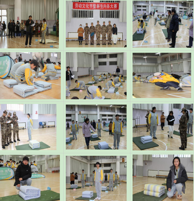 体育馆内务技能决赛亮相赛场方被棱角分明,细节把控精益求精,他们神情专注、动作娴熟,每一个规范操作都彰显着两月来的勤练苦磨,在有限的时间内,展现出最优异的“作品”这小小的一块被子凝聚着师生们的心血,用实力展现着内务素养的蜕变与提升!一面面棱角分明的“豆腐块”,展现的是新时代职教学子的专业素养与精神风貌。这正是学校推动劳动教育与职业教育融合发展的生动实践,为培养更多高素质技能人才奠定坚实基础。