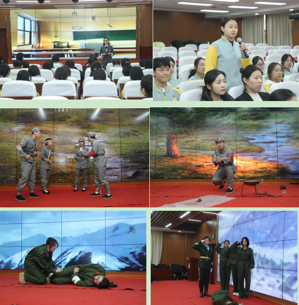 党员代表、团员代表与青年学生联袂呈现“团结奋斗、爱国奉献”主题历史课堂,《金色的鱼钩》《丰碑》《觉醒年代》三部微型情景剧,带全体师生回溯艰苦卓绝的革命岁月,沉浸式感受先辈们以不畏艰难、团结协作、无私奉献的革命信念穿越血火的磅礴力量。现场师生热泪盈眶,爱国之志油然而生,三个党小组组长依次登台,结合情景剧感悟分享心声。