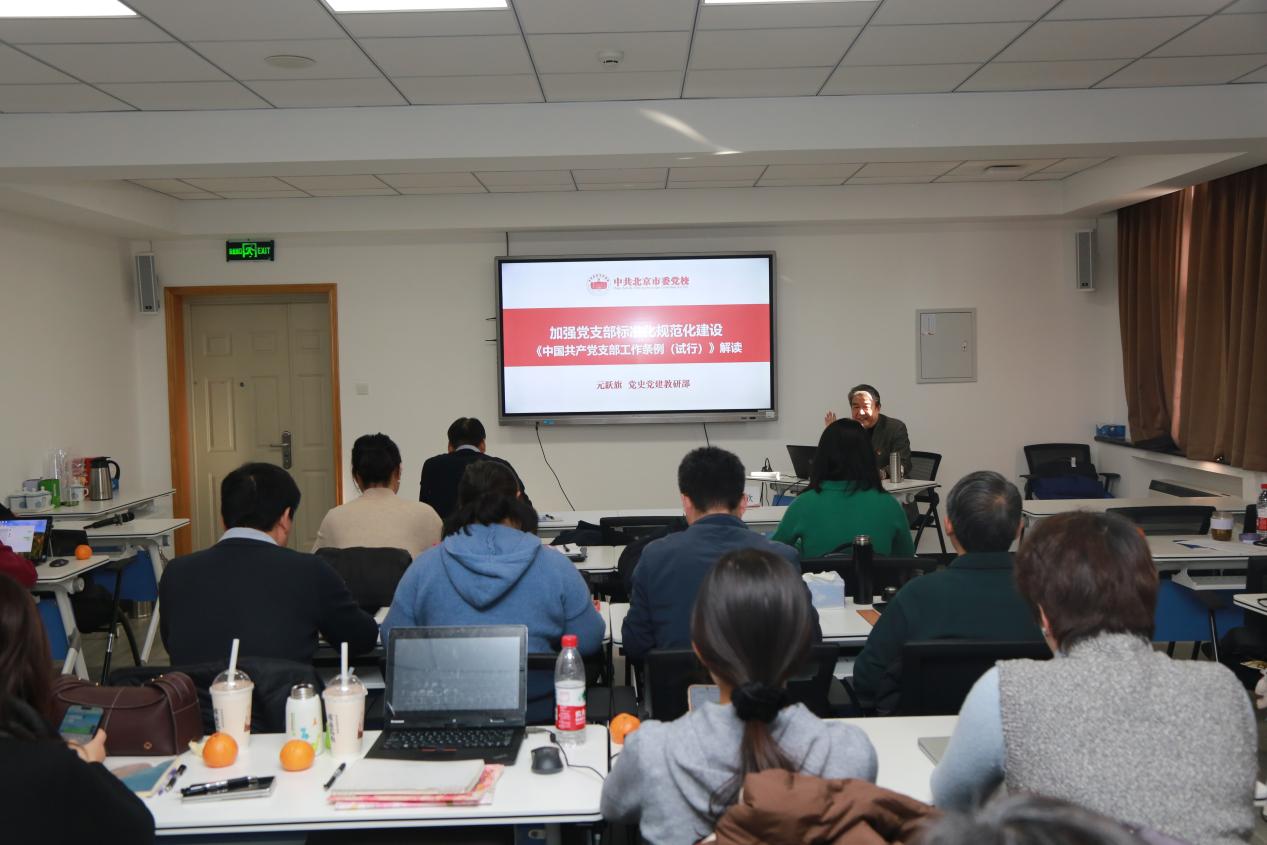 北京市委党校原党史党建教研部副教授元跃旗作《建设“四强”党支部的标准化规范化》的专题培训。加强党的基层组织建设,关键是从严抓好落实,课程以《中国共产党支部工作条例(试行)》为根本遵循,聚焦“三会一课”制度、党支部换届选举工作、培养发展党员工作三大关键板块,详细阐述政治标准与实操方法,为基层党支部标准化规范化建设提供精准指引,为党务工作者优化工作流程,提升履职能力提供了有力支撑。
