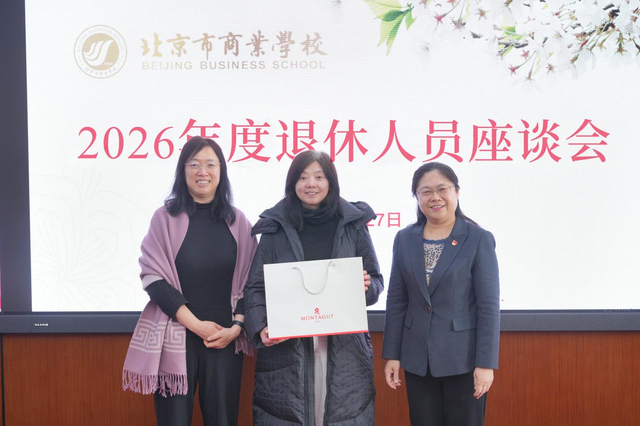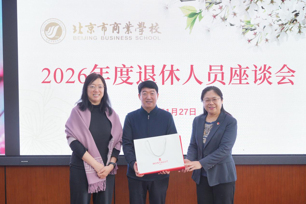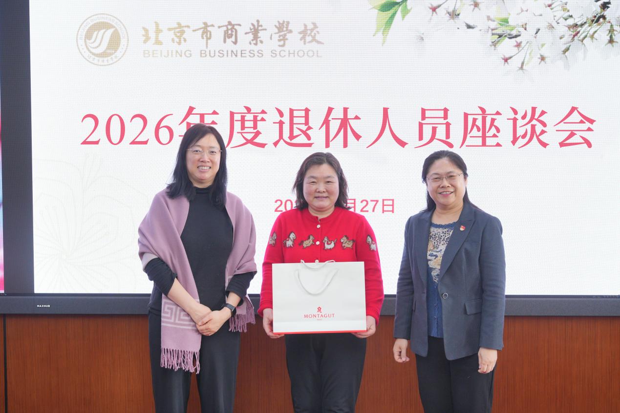 近日,北京市商业学校工会在学校四层会议室温情举办退休教职工座谈会。学校党委书记邢连欣,党委副书记、校长黄凤文,党委副书记、工会主席李光勤与2026年即将光荣退休的教职工齐聚一堂,共话岁月,致敬芳华。 会议室内暖意融融,洋溢着温馨与感念的氛围。退休教教职工们纷纷打开记忆的匣子,畅谈工作中难忘的片段,言语间饱含对教育事业的热忱与对学校的深厚情感。大家一致表示,感谢学校多年来在工作和生活上给予的关心与支持,并围绕课程建设、师资培养、校园文化等方面提出了中肯建议,流露出对学校未来发展的殷切期盼。 邢连欣书记代表学校向各位退休教职工致以崇高敬意和衷心感谢。邢书记指出,各位教职工数十年来默默奉献、辛勤耕耘,是学校发展的亲历者、推动者和贡献者,学校今日的成就凝聚着大家的智慧与汗水。 邢书记表示,希望退休教职工在安排好退休生活的同时,能继续关注学校动态,同时祝愿各位教职工退休后生活丰富多彩,健康常伴,欢迎常回学校看看。 座谈会尾声,校领导向每位退休教职工赠送了精心准备的纪念品,并合影留念。一份份纪念品承载着学校的感激与祝福,一次次握手凝聚着深情与不舍。活动在温馨而热烈的气氛中圆满结束。