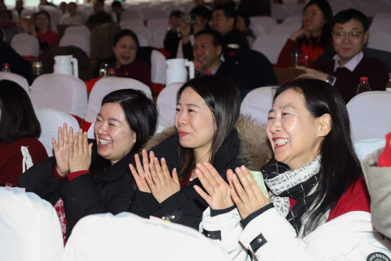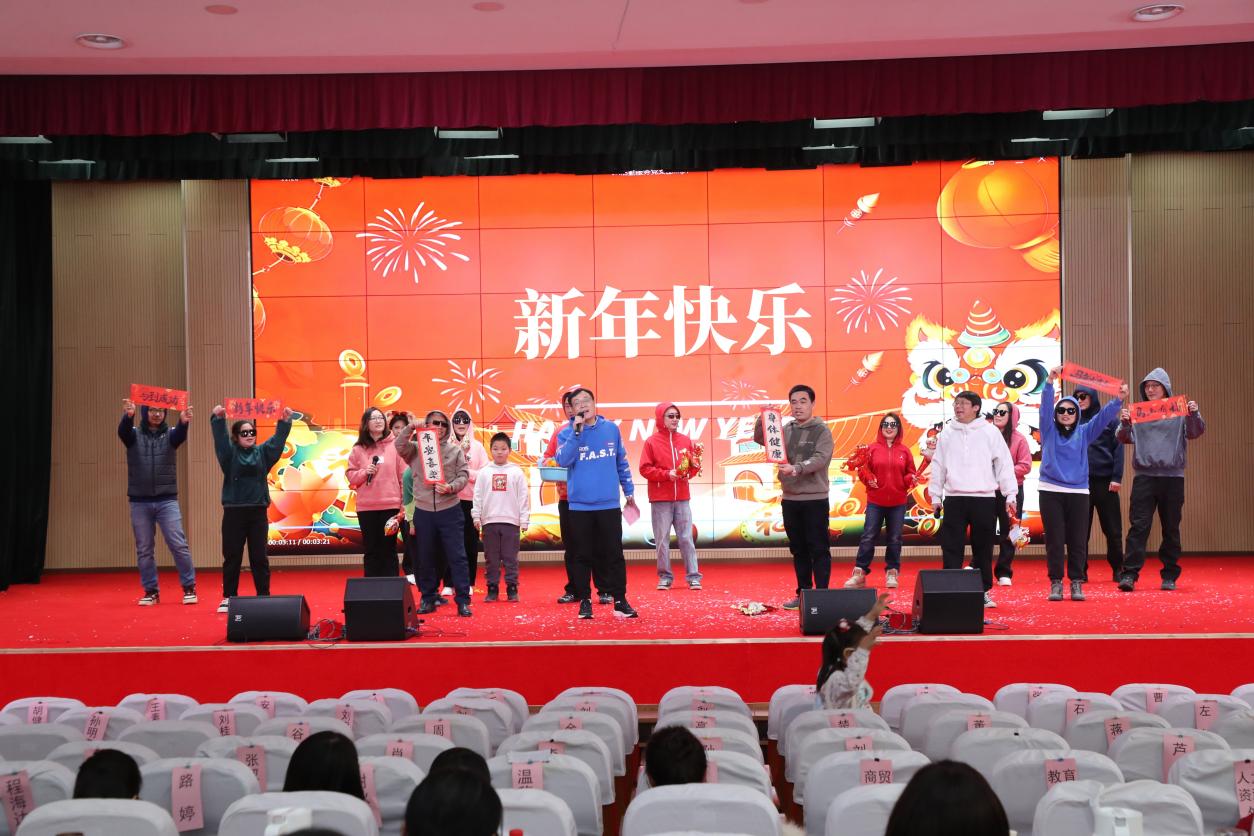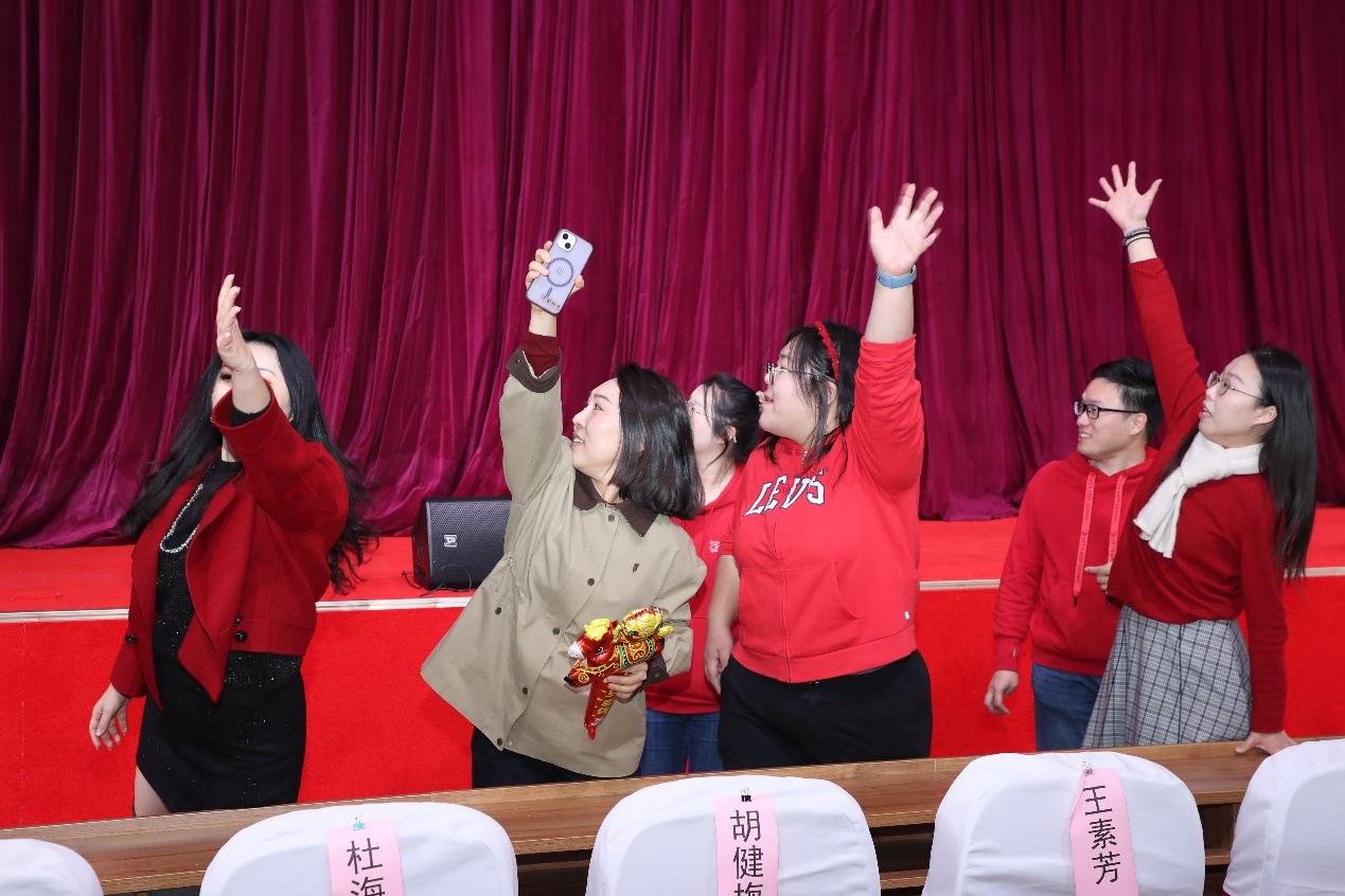 演出过程中,还穿插了趣味互动游戏环节,校领导也向本命年教工赠送了吉祥祝福,将现场气氛一次次推向高潮。