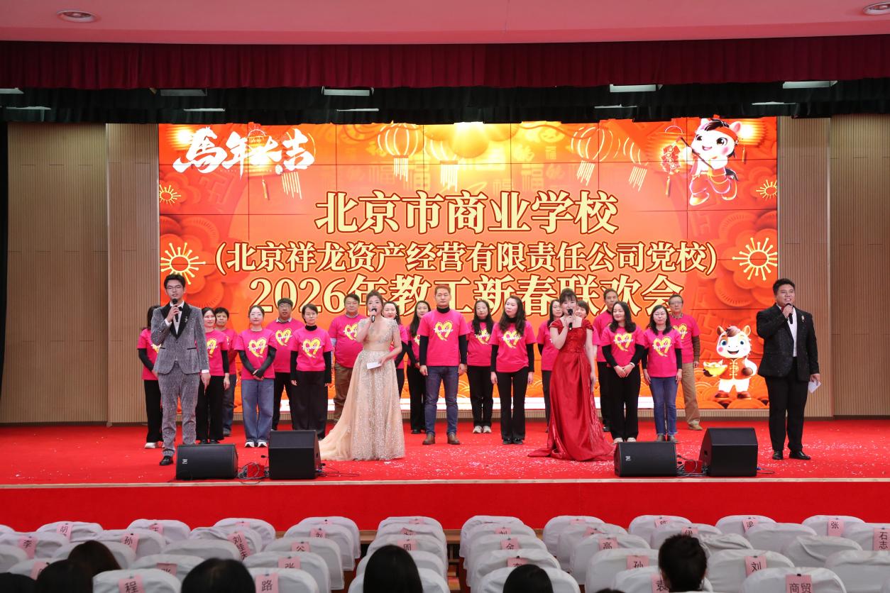 祥马腾云迎新岁,商校同心启锦程!1月28日,北京市商业学校2026年教工新春联欢会在学校礼堂隆重举行。学校领导班子全体成员与全校教工欢聚一堂,共同迎接农历马年的到来。整场活动气氛热烈、笑语盈堂,洋溢着温馨祥和、团结奋进的节日氛围。