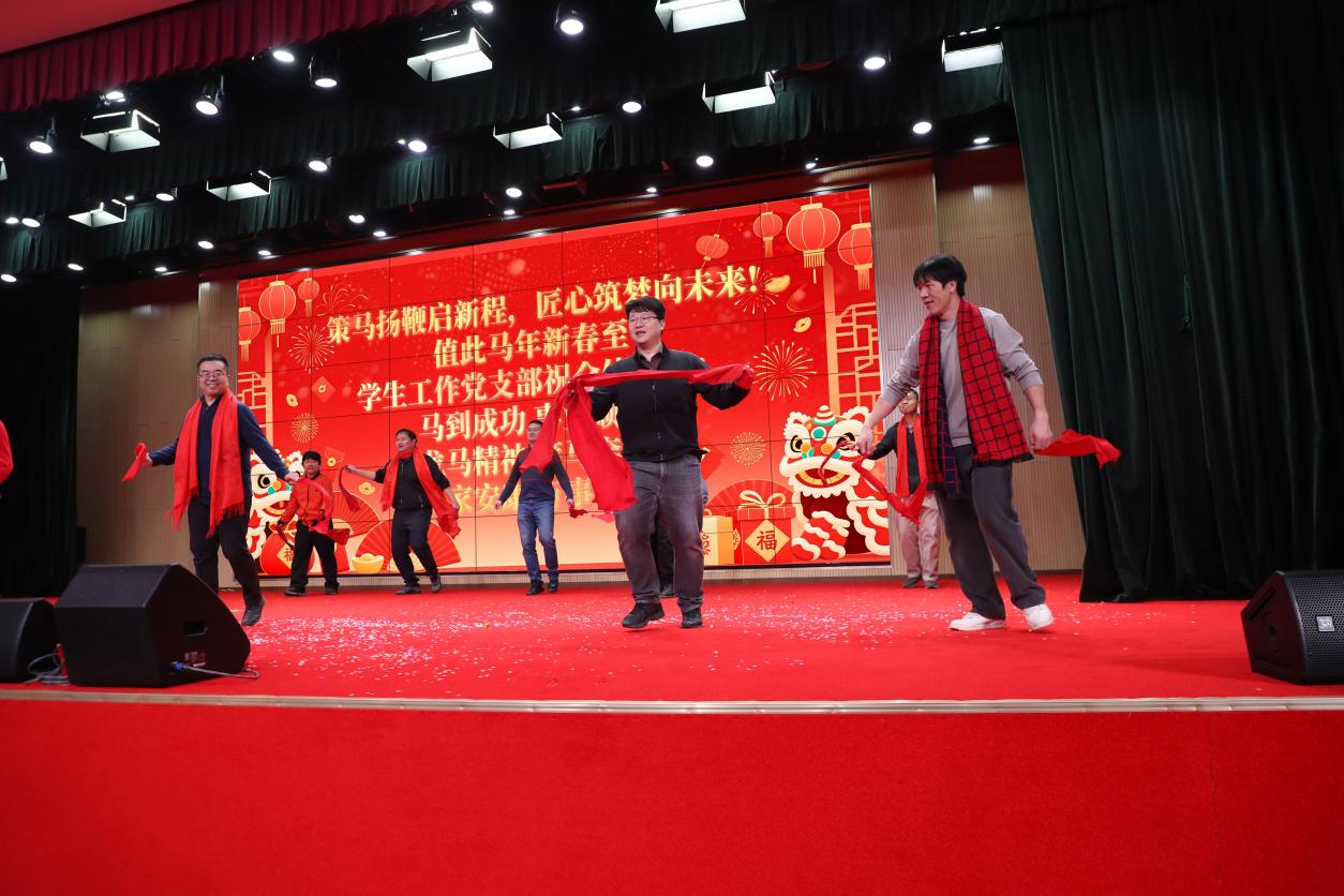 学生工作党支部的小品《找家长》贴近教育实际、笑料频出,紧随其后的舞蹈《我会一直顺》《大红灯笼》则红火热闹,洋溢着浓浓的喜庆年味。
