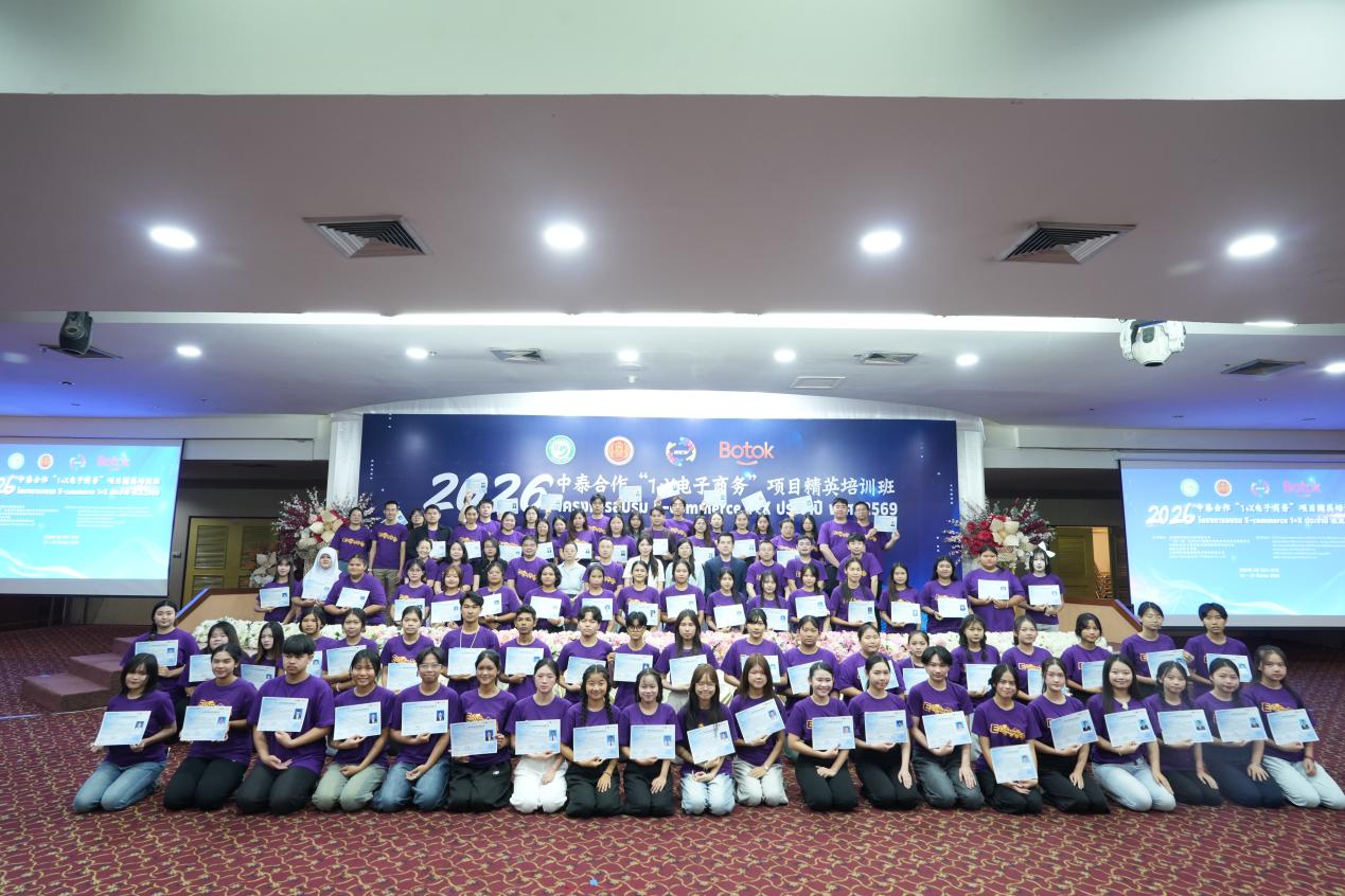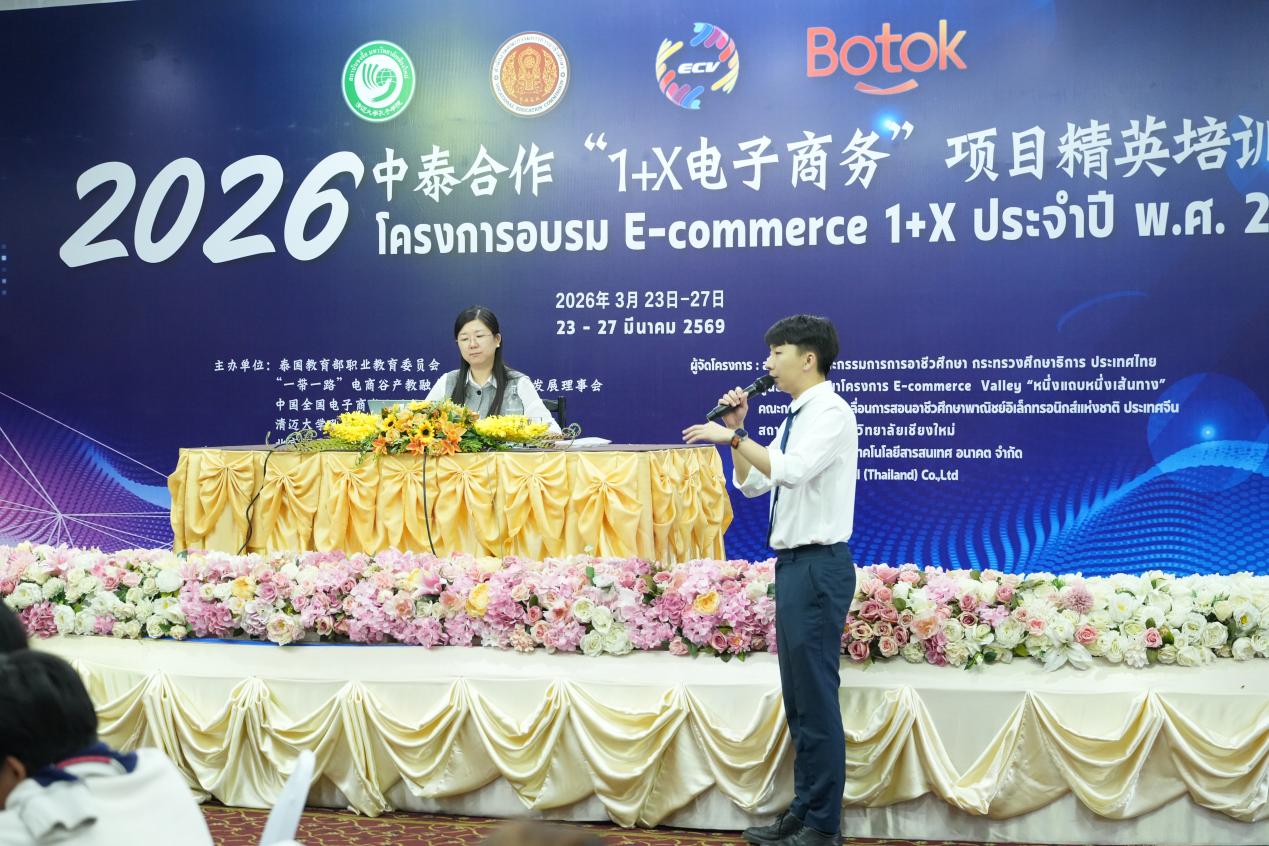 近日,2026年中泰数字技能开发合作项目“1+X电子商务”精英培训班在泰国清迈圆满落幕。我校数智商贸系刘欢、邱添添两位教师受邀赴泰承担核心课程教学,充分展现学校专业实力,为中泰跨境电商职教合作注入新动能。 本次培训由泰国教育部职业教育委员会、全国电子商务职业教育教学指导委员会等多方联合主办,汇聚泰国10所职业院校70名学生及中国多所院校师生代表,聚焦AI赋能数字电商技能培育,采用“理论+实操+实战+路演”的混合式教学模式,是中泰数字技能合作的年度升级之作。 两位教师量身定制课程,聚焦视觉营销与品牌构建,讲解品牌视觉识别系统搭建及高转化页面设计逻辑;深耕短视频IP打造,指导学生运用AI软件创作,让每位学生都能独立完成15-30秒的高质量产品展示短视频,掌握跨境电商内容转化核心技能。 最终的路演现场,中泰师生混合组队开展全流程电商实战,两位教师作为中方核心评审进行专业点评,学员成果获泰方高度认可。 此次赴泰授课,既是教师个人专业能力的展示,更是北京市商业学校深耕数智商贸专业建设、推进国际化产教融合、服务“一带一路”电商合作的生动实践。未来,学校将持续拓展国际合作渠道,输出优质教学资源,培育跨境电商国际化人才,助力中泰数字经济协同发展。