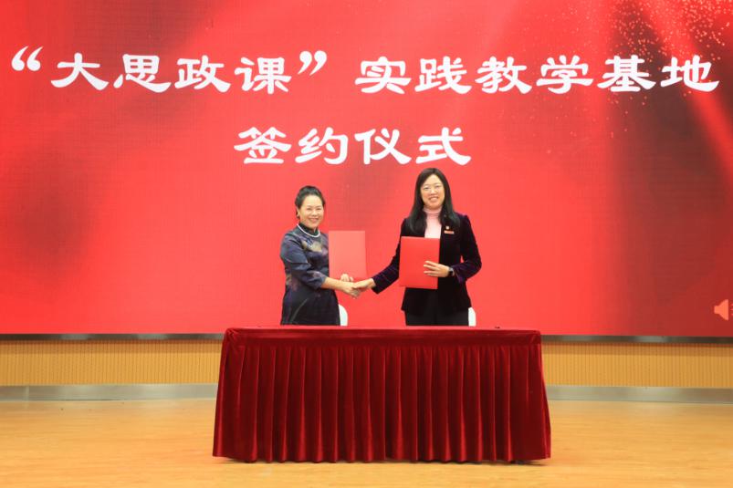 现场师生共同见证北京市商业学校与昌平十三陵水库管理处、北京七吉文化传播有限公司分别签订了“爱国主义教育基地”“大思政课”实践教学基地共建协议并进行揭牌。
