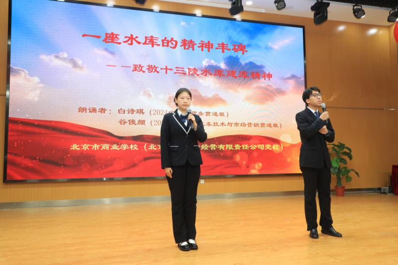 活动期间,学校马克思主义学院思政教师带领学生上了一堂形式丰富的思政大课,首先,中高职学生代表谷俊颜、白诗琪声情并茂地朗诵了《一座水库的精神丰碑》,用激昂的文字和真挚的情感,歌颂了十三陵水库建设过程中所蕴含的伟大建库精神,让在场的每一个人都深受触动。