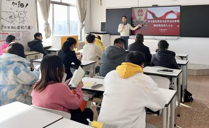部门支部联动研学,以科务会或主题党日活动的形式,组织教职员工学习宪法相关知识,观看专题宣传片,学唱《宪法伴我成长》法治歌曲,结合部门业务职能,开展“把宪法精神融入履职全过程”专题研讨,有效增强教职员工尊崇宪法、学习宪法、遵守宪法、维护宪法、运用宪法的思想自觉和行动自觉。