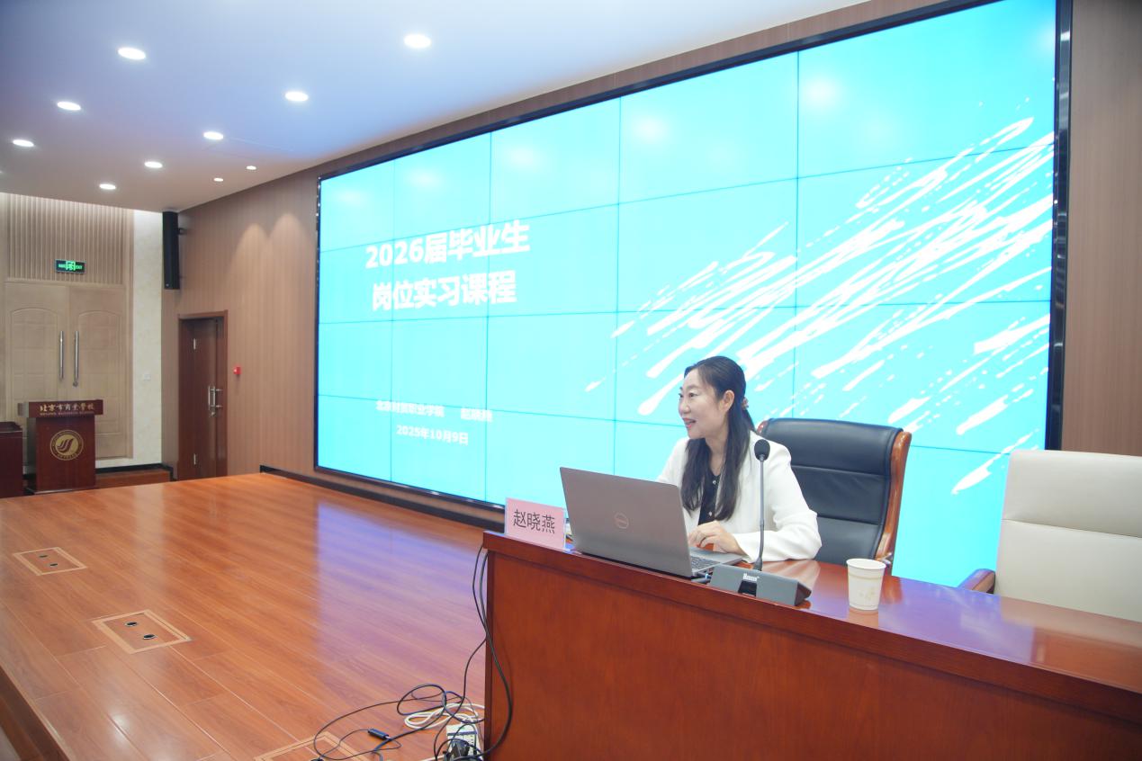 为深入贯彻《职业学校学生实习管理规定》,全面落实“高质量实习促进高质量就业”的总体要求,10月9日上午,北京市商业学校2024级高职阶段学生岗位实习动员大会在学术报告厅举行。校长助理蒋舒雅,财会经济系、商贸信息系、学生处、招生与合作处相关负责人,大数据与会计、电子商务专业全体高职段学生及辅导员齐聚一堂 ,共同吹响实习“集结号”。 会议邀请北京财贸职业学院教务处副处长赵晓燕作专题宣讲。赵处长以“毕业生岗位实习课程”为题,围绕“什么是岗位实习、实习课程的特殊性、实习任务清单及工学云平台操作”四大模块展开系统解读。她强调,岗位实习是人才培养方案中“学分最高、周期最长、与就业衔接最紧”的必修课程,既是检验四年学习成效的“试金石”,更是直通职场的“加速器”。赵处长提醒同学们严守实习纪律,在指导教师与企业导师“双导师”引领下,按时高质完成各项任务,为毕业即上岗奠定扎实基础。 活动最后,赵处长深情寄语全体同学:愿大家在未来的职业道路上坚定前行,勇拓新程,以实际行动书写属于自己的精彩篇章。 此次动员大会精准发力、靶向施策,为学生即将开启的实习之旅锚定方向、注入动能。下一步,学校将持续完善“实习-就业”一体化服务体系,推动校企协同育人再上新台阶,助力商校学子高质量充分就业。