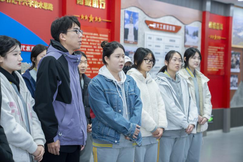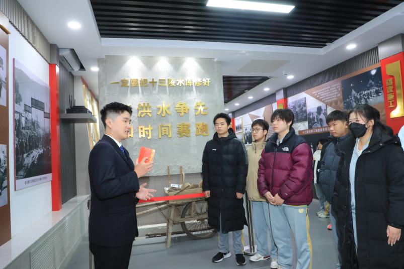 随后,2024级城市轨道交通运营服务(3 +2)2班的陶萱和2024级汽车技术服务与营销贯通(高职)班的陈亮两位中高职学生代表,在思政课教师指导下,以“弘扬建库精神 做新时代有为青年”为主题,围绕十三陵水库为什么建设、如何建设、以及如何传承建库精神等问题,为2024级会计事务五年一贯班、2024级跨境电子商务3+2班的同学们生动进行了生动讲述,在现场参观和学习中,同学们对十三陵水库“自力更生、艰苦奋斗、团结协作、无私奉献”的伟大建库精神有了更为直观、深刻的认识。