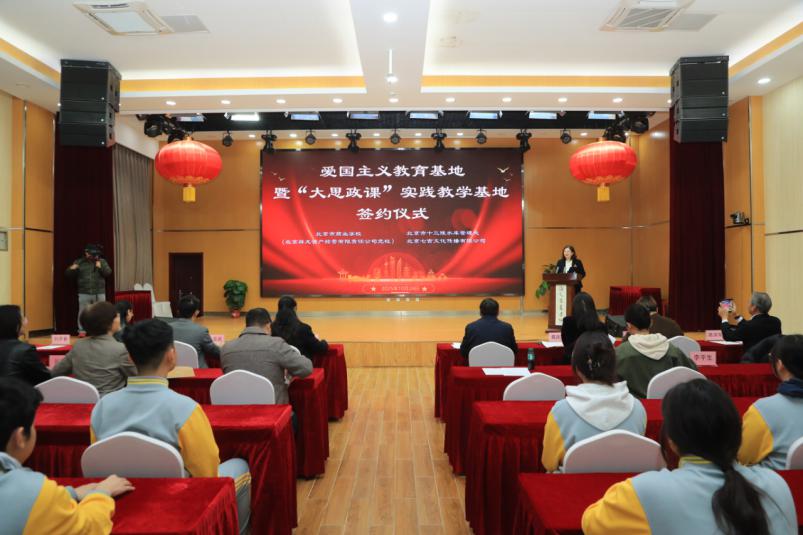 现场师生共同见证北京市商业学校与昌平十三陵水库管理处、北京七吉文化传播有限公司分别签订了“爱国主义教育基地”“大思政课”实践教学基地共建协议并进行揭牌。