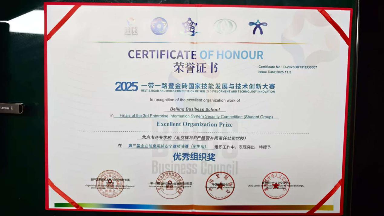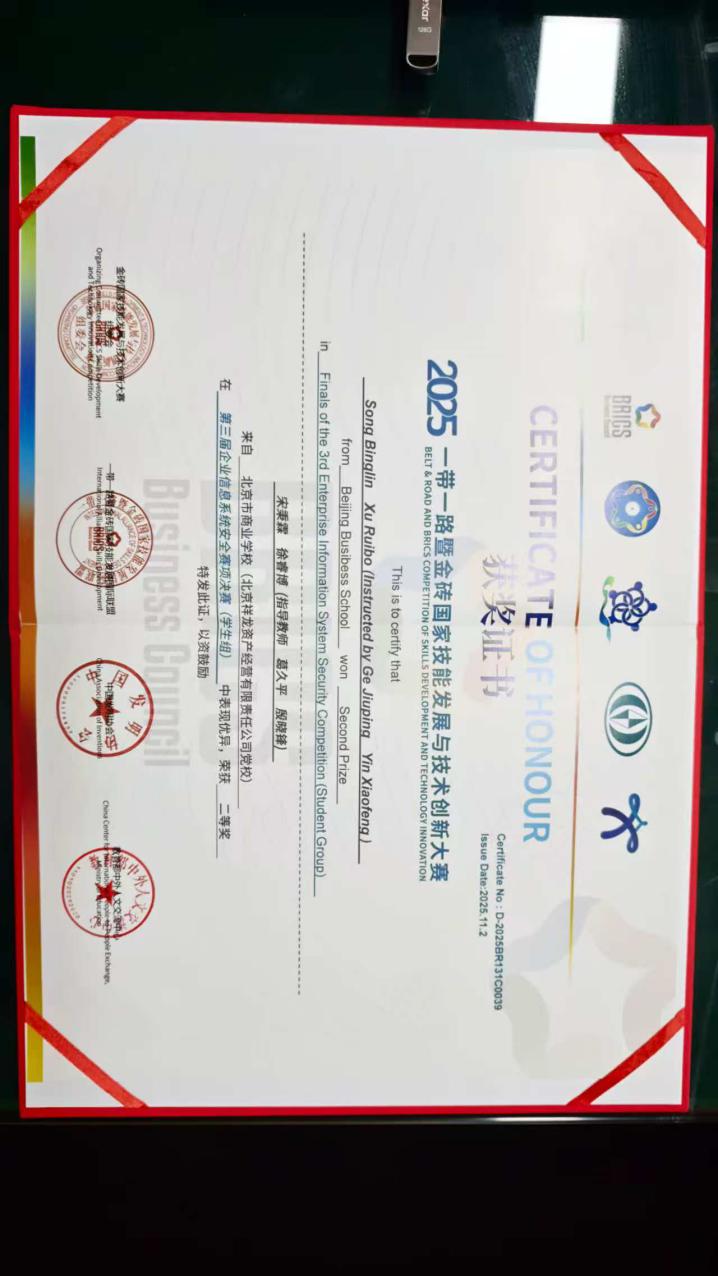 11月2日,2025“一带一路暨金砖国家技能大赛”企业信息系统安全赛项决赛在山东济宁圆满落幕。北京市商业学校商贸信息系2023级学生宋秉霖、徐睿博,历经区域选拔赛、全国总决赛等激烈角逐,最终以扎实的技术功底和出色的团队协作,成功斩获银牌。北京市商业学校荣获优秀组织奖。 决赛中,全国100多支队伍、200余名选手同台竞技,竞赛难度与专业认可度显著提升,赛事规模再创新高。比赛采用双人团体赛制,设置CTF夺旗、靶场行动、企业网络安全配置与渗透三大核心阶段,涵盖 WEB渗透、密码学破解、流量分析、数据库安全、WAF配置等实战任务模块,全面检验参赛选手在企业系统安全运维、信息系统安全审计、企业网络安全应急响应、系统取证调查、企业应用程序安全和漏洞挖掘等方面的专业技能。 为备战此次大赛,学校商贸信息系电子互联网IT服务专业教师精心策划并组织实施。根据赛事要求,结合企业信息系统安全领域的前沿技术,制定了科学合理的训练计划。训练内容涵盖网络安全攻防、数据加密、系统漏洞修复等多个核心领域,旨在全面提升学生的实战能力和应变水平。同时,专业教师合理安排训练时间,确保学生在掌握理论知识的同时,有充足的实践机会进行技能演练和问题解决。 本次获奖在为学校赢得荣誉的同时,也为后续该专业教学改革和人才培养提供了宝贵的经验。未来,学校将继续深化产教融合,加强校企合作,培养更多具有创新能力和国际视野的高素质技术技能人才,为“一带一路”建设和金砖国家合作贡献更多力量。