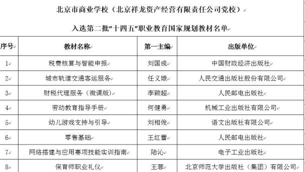 再创新高!我校8本教材入选第二批“十四五”职业教育国家规划教材公示名单
