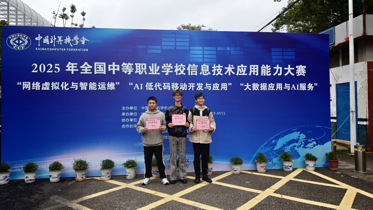 近日,由中国计算机学会(CCF)主办、中国计算机学会中等职业教育技术委员会(CCF-SVC)承办的2025年全国中等职业学校信息技术应用能力大赛决赛在武汉市东西湖职业技术学校圆满举行。商校学子再创历史最佳战绩斩获一等奖3项、二等奖2项,实现网络虚拟化、AI低代码、AIGC数字媒体艺术创意三大赛道全面开花。