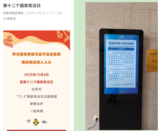 北京市商业学校全面贯彻落实党的二十大和二十届二中、三中、四中全会精神,深入学习宣传贯彻习近平法治思想、习近平文化思想和习近平总书记关于宪法的重要论述,认真实施法治宣传教育法,加强宪法宣传教育,精心设计、组织开展丰富多样的“宪法宣传周”活动,学习宣传贯彻习近平法治思想,推动宪法深入人心。
