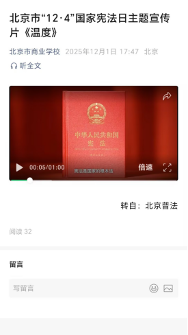 学校微信公众号、校内电子屏发布宪法宣传海报
