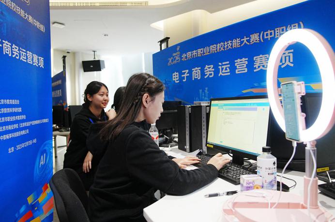 电子商务运营赛项聚焦“数字场景还原+实战运营导向”,选手们完成网店搭建、运营推广、直播销售及客户服务,展现电商创新思维与实战实力。
