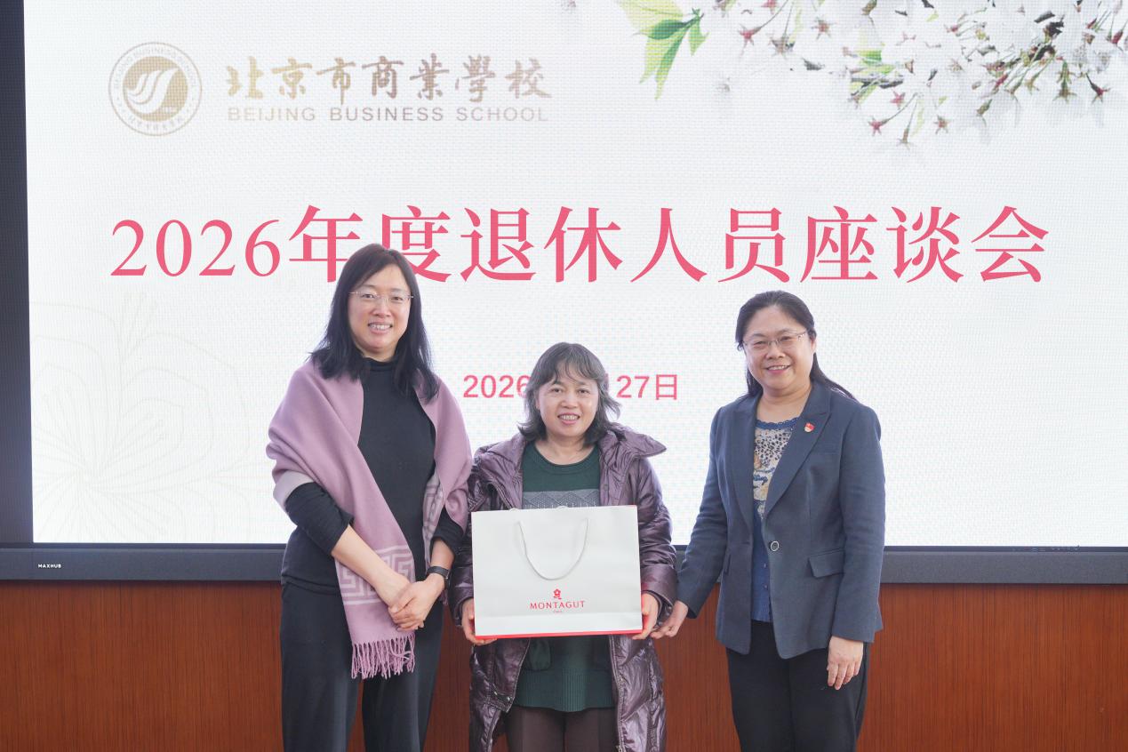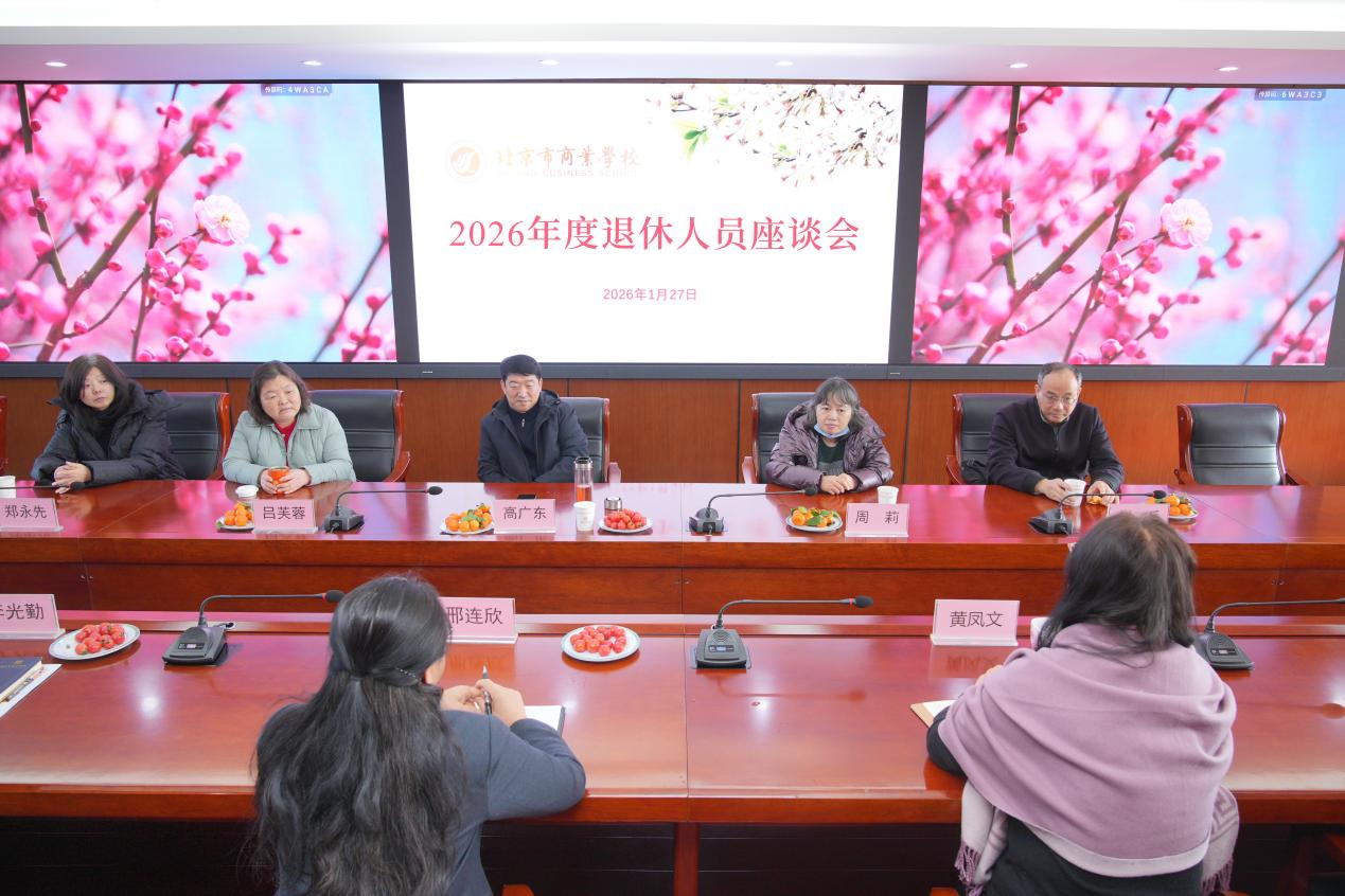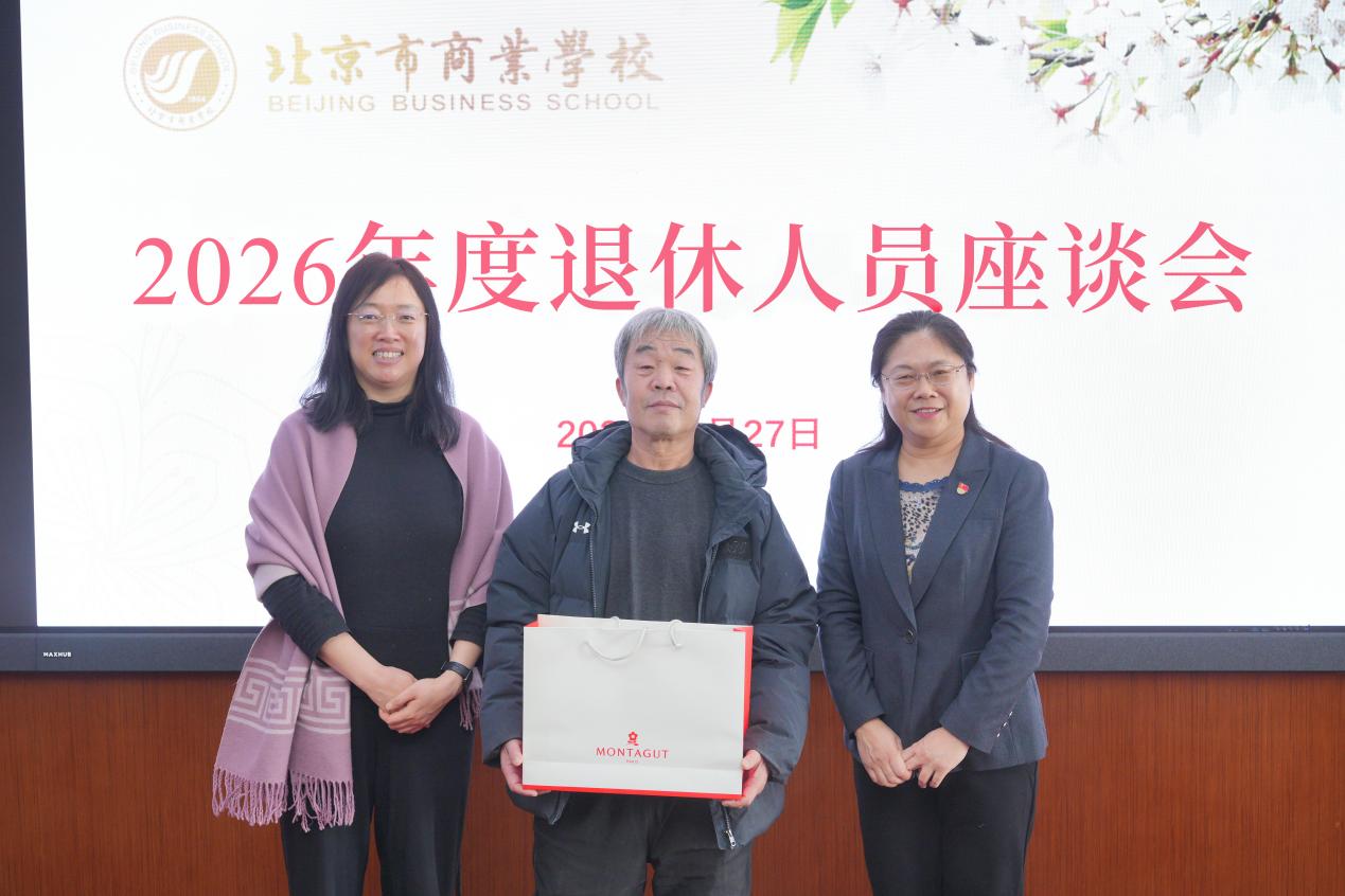 近日,北京市商业学校工会在学校四层会议室温情举办退休教职工座谈会。学校党委书记邢连欣,党委副书记、校长黄凤文,党委副书记、工会主席李光勤与2026年即将光荣退休的教职工齐聚一堂,共话岁月,致敬芳华。 会议室内暖意融融,洋溢着温馨与感念的氛围。退休教教职工们纷纷打开记忆的匣子,畅谈工作中难忘的片段,言语间饱含对教育事业的热忱与对学校的深厚情感。大家一致表示,感谢学校多年来在工作和生活上给予的关心与支持,并围绕课程建设、师资培养、校园文化等方面提出了中肯建议,流露出对学校未来发展的殷切期盼。 邢连欣书记代表学校向各位退休教职工致以崇高敬意和衷心感谢。邢书记指出,各位教职工数十年来默默奉献、辛勤耕耘,是学校发展的亲历者、推动者和贡献者,学校今日的成就凝聚着大家的智慧与汗水。 邢书记表示,希望退休教职工在安排好退休生活的同时,能继续关注学校动态,同时祝愿各位教职工退休后生活丰富多彩,健康常伴,欢迎常回学校看看。 座谈会尾声,校领导向每位退休教职工赠送了精心准备的纪念品,并合影留念。一份份纪念品承载着学校的感激与祝福,一次次握手凝聚着深情与不舍。活动在温馨而热烈的气氛中圆满结束。