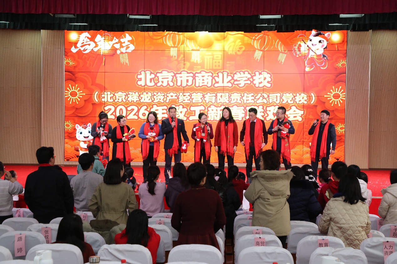 祥马腾云迎新岁,商校同心启锦程!1月28日,北京市商业学校2026年教工新春联欢会在学校礼堂隆重举行。学校领导班子全体成员与全校教工欢聚一堂,共同迎接农历马年的到来。整场活动气氛热烈、笑语盈堂,洋溢着温馨祥和、团结奋进的节日氛围。
