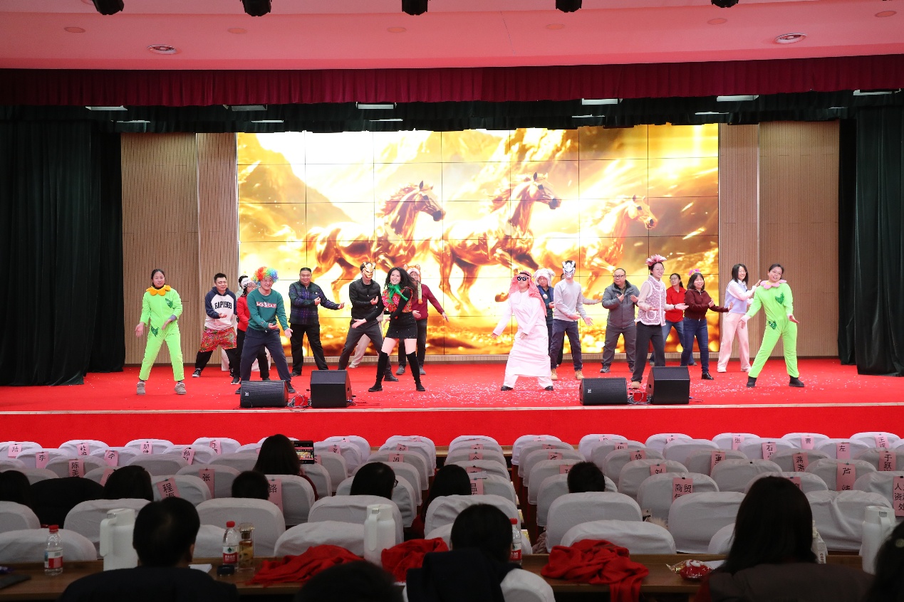 教学管理党支部创意十足的《T台走秀+集体舞〈马年style〉》,将时尚元素与佳节欢庆巧妙结合,轻松幽默的表演令全场笑声不断。