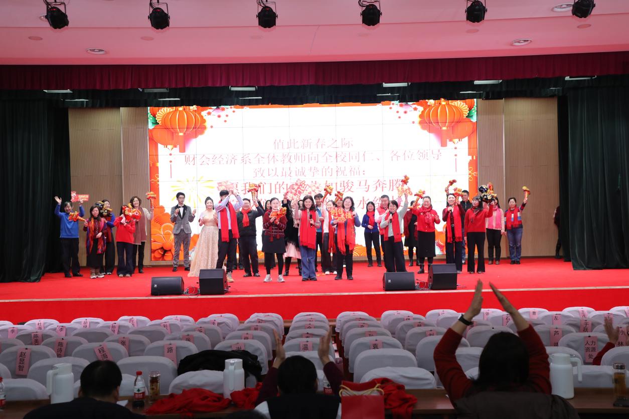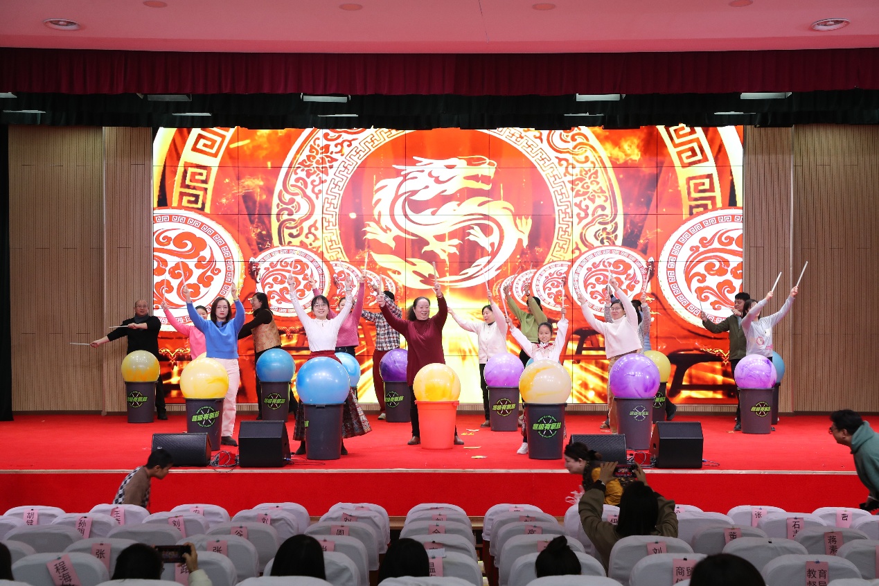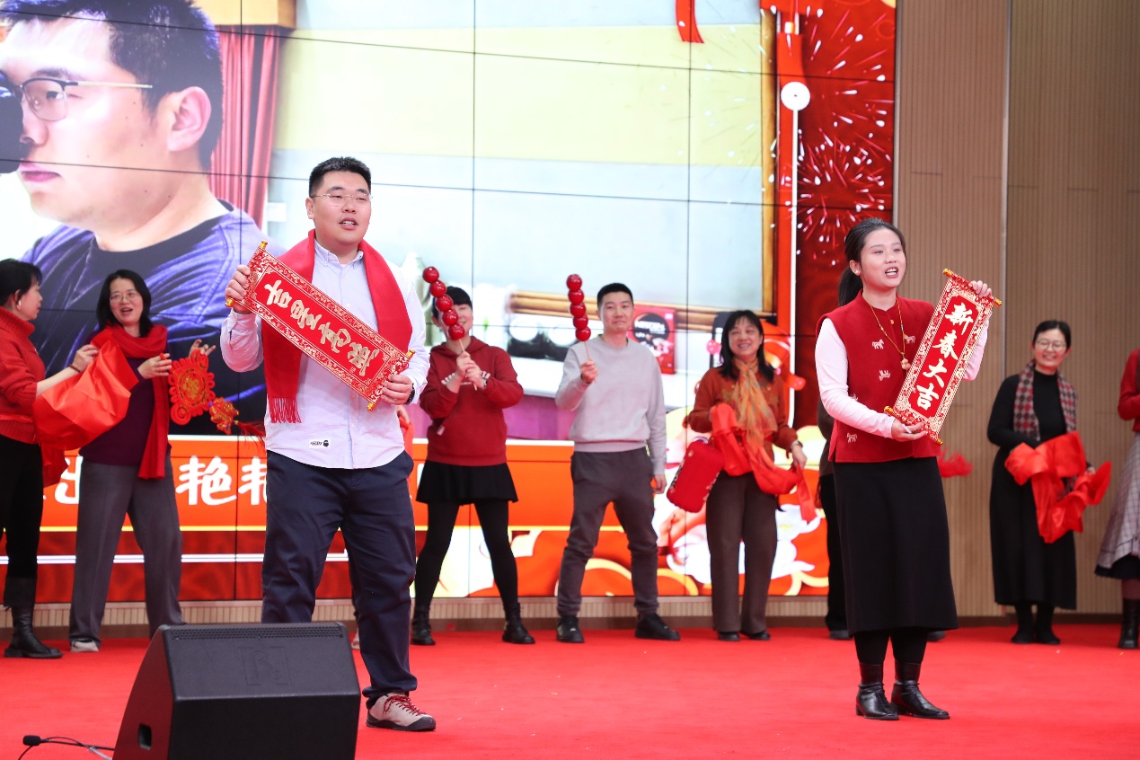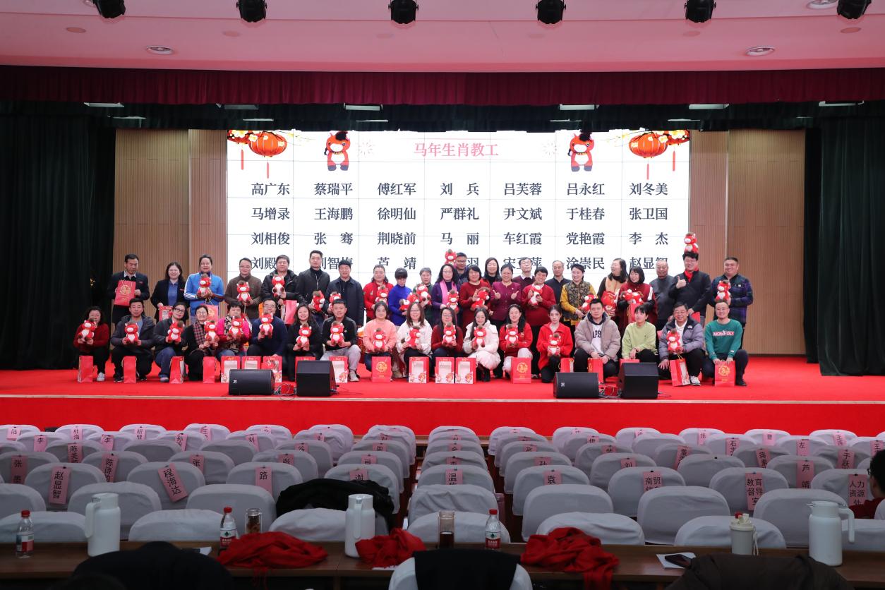 演出过程中,还穿插了趣味互动游戏环节,校领导也向本命年教工赠送了吉祥祝福,将现场气氛一次次推向高潮。