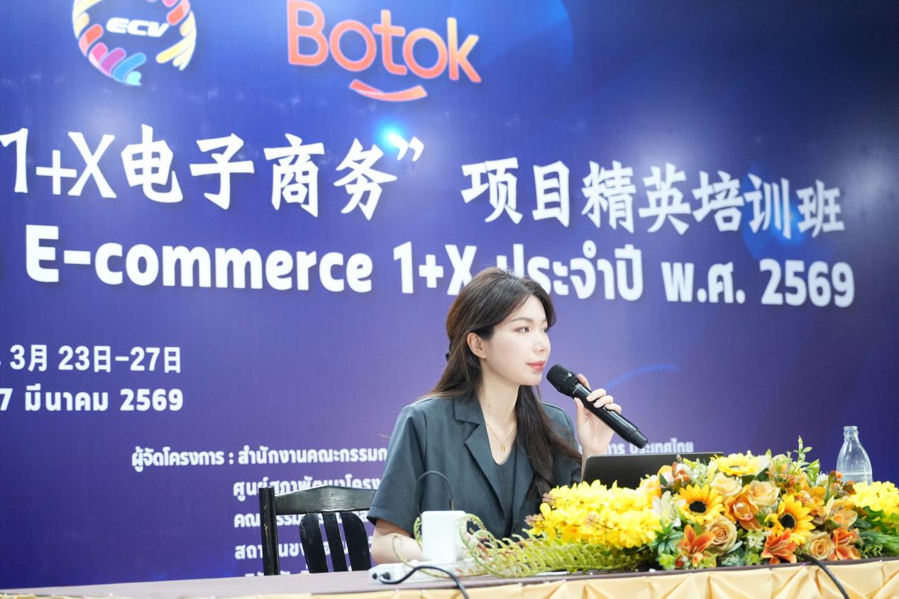 近日,2026年中泰数字技能开发合作项目“1+X电子商务”精英培训班在泰国清迈圆满落幕。我校数智商贸系刘欢、邱添添两位教师受邀赴泰承担核心课程教学,充分展现学校专业实力,为中泰跨境电商职教合作注入新动能。 本次培训由泰国教育部职业教育委员会、全国电子商务职业教育教学指导委员会等多方联合主办,汇聚泰国10所职业院校70名学生及中国多所院校师生代表,聚焦AI赋能数字电商技能培育,采用“理论+实操+实战+路演”的混合式教学模式,是中泰数字技能合作的年度升级之作。 两位教师量身定制课程,聚焦视觉营销与品牌构建,讲解品牌视觉识别系统搭建及高转化页面设计逻辑;深耕短视频IP打造,指导学生运用AI软件创作,让每位学生都能独立完成15-30秒的高质量产品展示短视频,掌握跨境电商内容转化核心技能。 最终的路演现场,中泰师生混合组队开展全流程电商实战,两位教师作为中方核心评审进行专业点评,学员成果获泰方高度认可。 此次赴泰授课,既是教师个人专业能力的展示,更是北京市商业学校深耕数智商贸专业建设、推进国际化产教融合、服务“一带一路”电商合作的生动实践。未来,学校将持续拓展国际合作渠道,输出优质教学资源,培育跨境电商国际化人才,助力中泰数字经济协同发展。