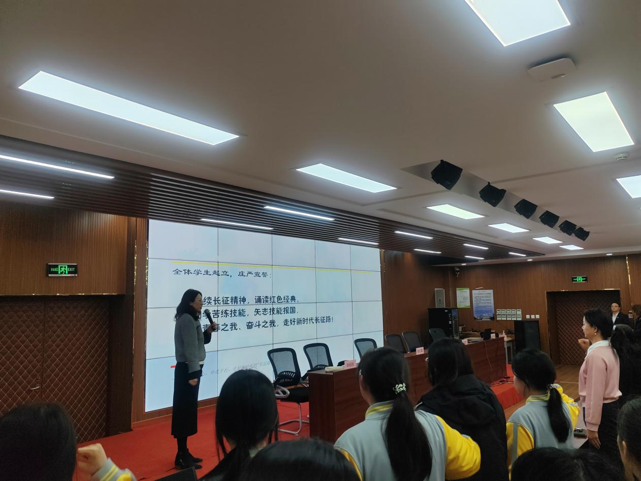 本学期首场校长领读晨训活动由黄凤文校长垂范开启。她亲自带领2025级轨道交通专业(3+2)1班学子,诵读《清平乐·六盘山》《少年中国说》(节选)等经典篇目。同学们精神饱满、姿态昂扬,以整齐有力的声音致敬革命先辈,彰显新时代青年的家国担当。领读结束后,黄校长深情寄语,勉励学子珍惜晨训时光、养成阅读习惯,将长征精神内化于心、外化于行,以青春之我助力强国建设。