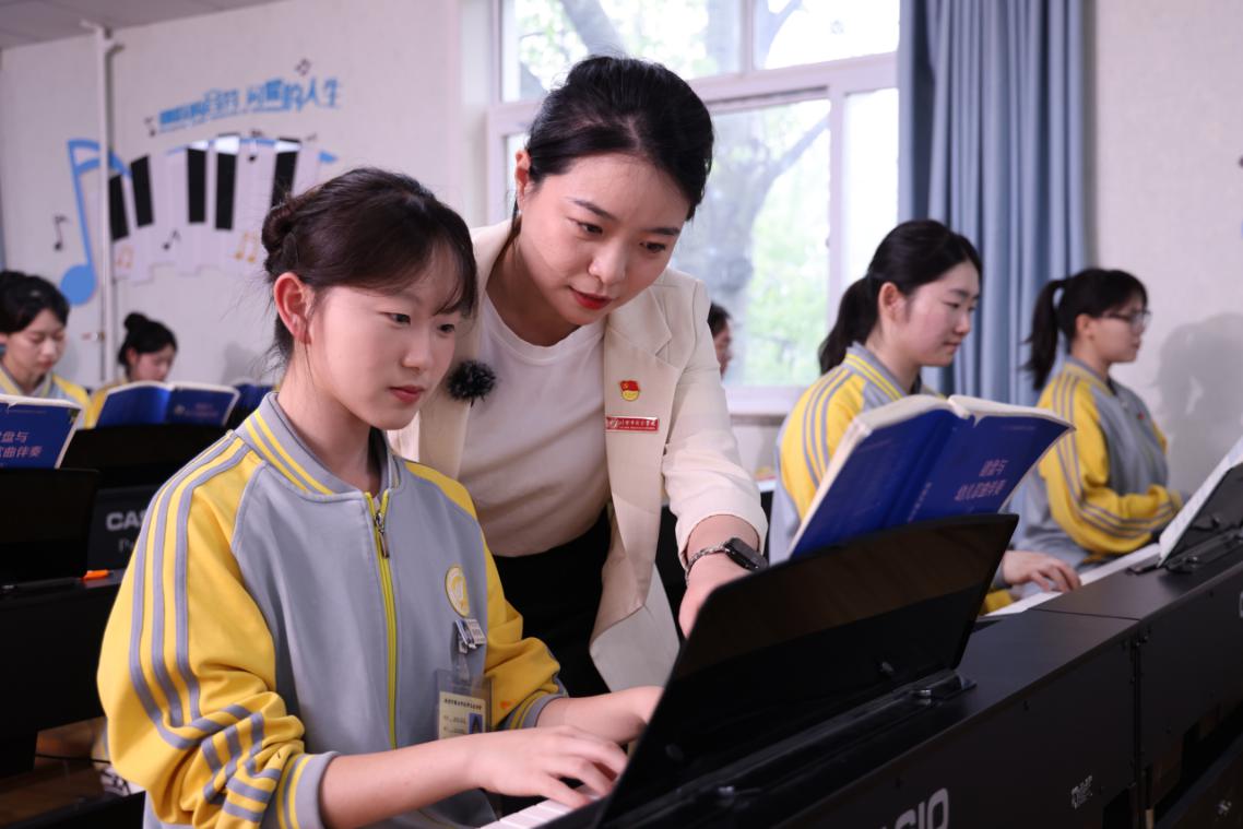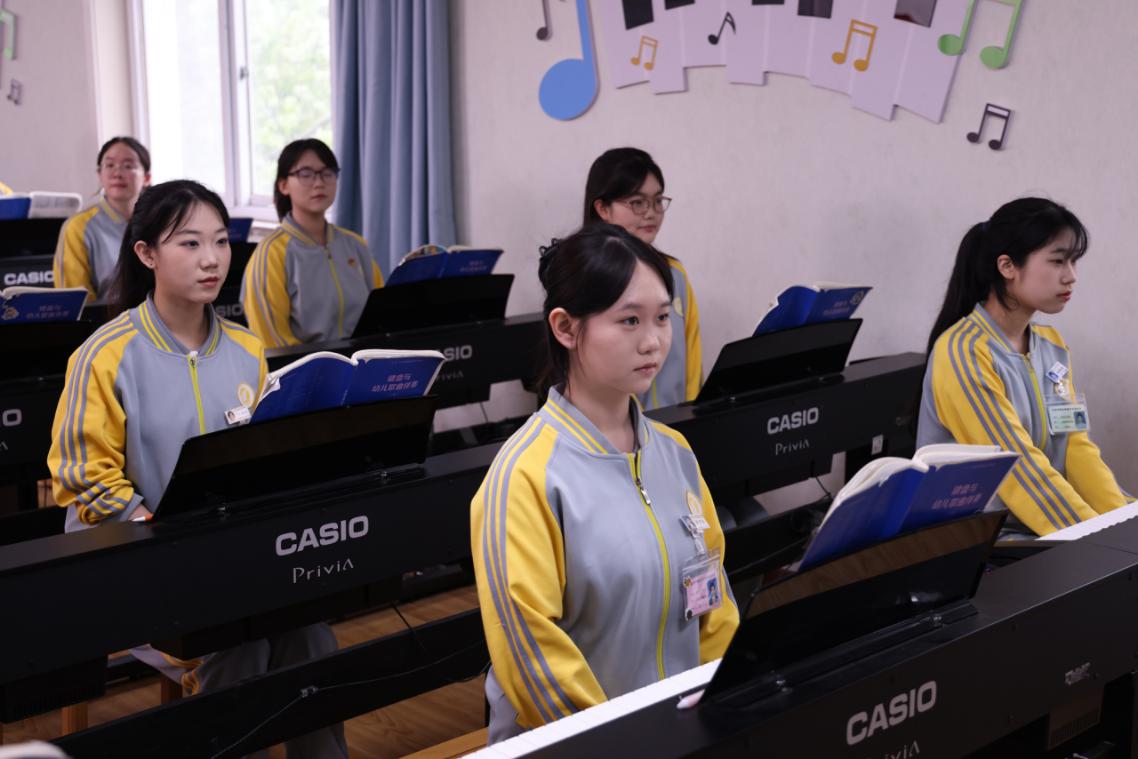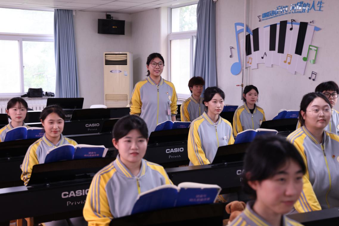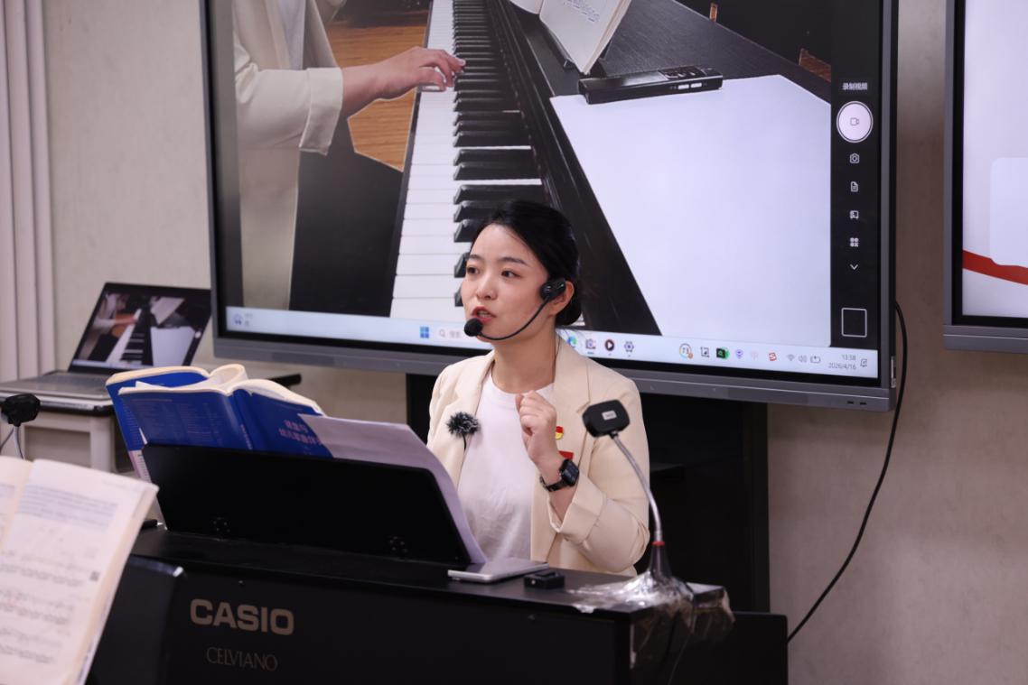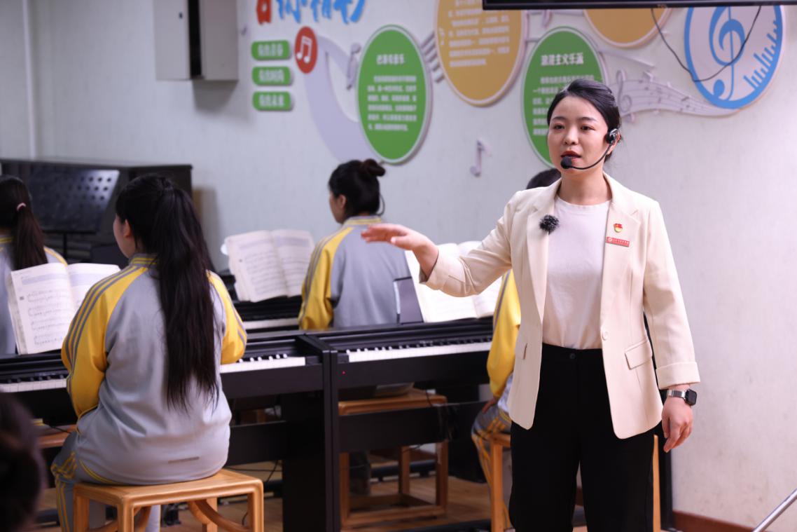 聚焦岗位需求,学生们以助教“小老师”的身份深度参与学习中,通过分析-理解-表现的阶梯式学习路径,解码音符符号的文化价值、感受音乐作品的情感脉络、释放音乐作品的表现张力,在合作探究中真切体悟课堂之美与音乐之美交融共生的独特意蕴。