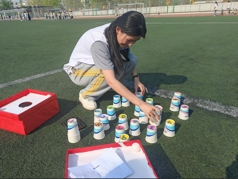 运动会还增设温馨体验区。纸杯配对、疯狂乒乓球等活动深受欢迎。活动道具由智慧养老专业和幼儿保育专业同学动手制作,在互动中展现专业的细心与创意,为赛场增添满满温情。