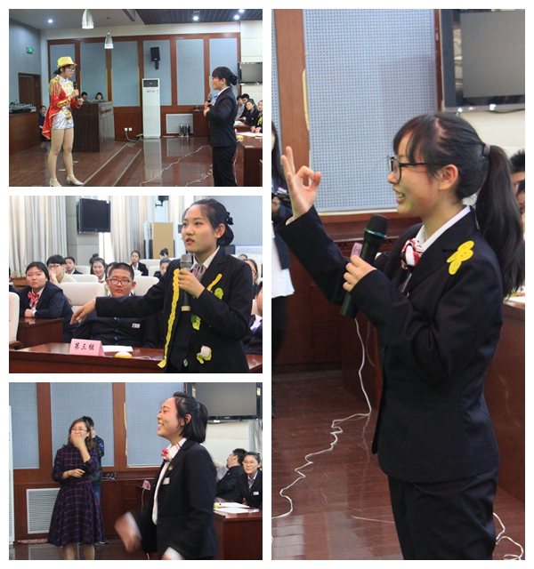 成语猜猜环节精彩纷呈,由每组两名学生参加,一个人比划一个人猜,在有限的时间内,选手想尽各种描述的词语、各种形象的动作及声音,帮助队友能尽快说出正确的成语。无论是选手还是观众,就连评委和主持人都有想帮助选手的冲动!