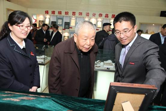 教育部原纪检组长田淑兰离和退休干部局副局长丁虹参观学生绳结作品