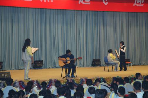 晚会伊始,首先由民族舞社团带来的舞蹈《傣族姑娘》拉开了整场晚会的帷幕,伴随着音乐旋律的缓缓响起,她们用专业的表演、婀娜的身姿将傣族舞蹈演绎的惟妙惟肖,让人目不转睛。接下来,来自APPLE话剧社的同学们用一场爆笑演出《进击的秦始皇》将整场晚会气氛推向高潮,重新上演了一出商校版的刺秦大戏,台下笑声不断。武术社的表演则精彩纷呈,套路、对练、踢木板,铿锵有力的动作使得台下掌声不断,更展现了中职学生的朝气蓬勃,展现了中职学生良好的精神风貌。接下来的街舞表演刚一登场就让台下为之沸腾,王吉甲的机械舞有模有样,李博宇的breaking则动感十足,十分精彩。如果说之前的节目场场火爆,那么接下来由原创社带来的音乐短剧则为整场演出带来了一缕“小清新”,学生用原创音乐的形式展现了剧中人物中考失利后的失落、走出阴影与重新树立自信,最后的一曲稻香更是唱出了人们对于美好生活的向往与对“正能量”的追求。音乐短剧过后,健美操社团的精彩表演又将晚会推向了一个崭新的高潮,健美操队员们手持花球,用充满激情的动作赢得了台下同学们的掌声。接下来,鬼舞社的全体成员也纷纷亮相,每一次音符的跳跃,每一个高低音的起落,都让在座的每一位观众感受到晚会热烈的气氛。最后,伴随着模特队的压轴演出,全场1200余名13级新生爆发出热烈的掌声。音乐在礼堂内响起,模特队同学身穿盛装、悉数登台,民族服饰、晚礼服、时装,模特队的唯美表演让同学们叹为观止。最后伴随着一曲《我相信》,主持人用美好的祝福,为晚会画上了一个圆满的句号,整场晚会也在热烈的氛围中结束。