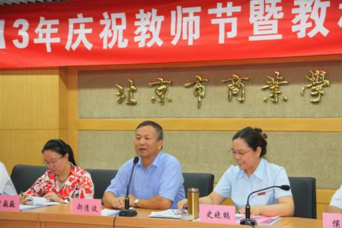 北京市商业学校教师节大会暨教科研表彰大会于2013年9月13日在学校A座报告厅隆重召开,祥龙公司副总经理郝清波、祥龙公司宣传部部长贾巍巍及学校领导和全体教职员工300余人参加了大会,会议由学校党委书记史晓鹤主持。
