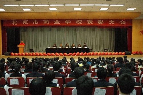 在全体起立,奏《国歌》后,王久瑜等老师分别宣读了“北京市2009-2010学年政府奖学金获奖名单”、“我校2009-2010学年奖学金名单”、“我校2009-2010学年三好学生名单”、“我校2009-2010学年优秀学生干部名单”、“我校2009-2010学年优秀班集体和文明班集体名单”;王静玉、朱玥、郑小翠、郑立新等同学代表获奖学生发言,她们总结了自己的优秀事迹,对学校表示了感谢,并表示要以更优秀的表现回报学校;各位领导和老师为获奖班级和个人颁发了证书和奖品。