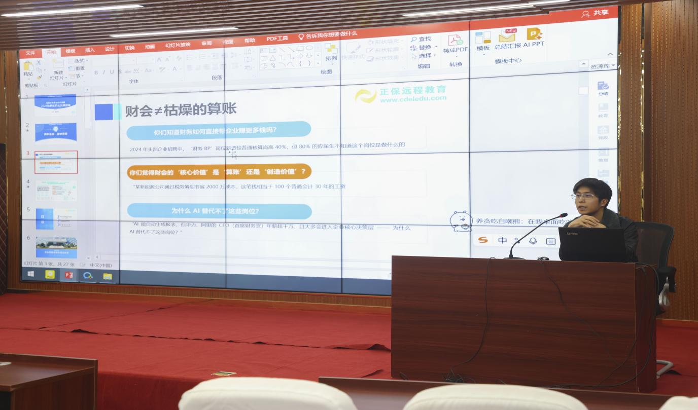 10月30日,财会经济系在青马视听中心成功举办“优秀学生表彰暨工作经验分享与职业生涯规划启航会”。本次活动旨在表彰在专业学习和初级考证中表现突出的学生,同时为2025级新升入高职阶段的学生搭建专业认知与职业发展的桥梁,激励学子以榜样为引领,科学规划未来,坚定在财会经济领域发展的信心。 活动特邀2024级优秀毕业生、现任职于中联税务师事务所的聂思远,以及来自网中网公司的职业规划师胡志彬担任嘉宾。2025级大数据与会计五年一贯高职班、2025级大数据与会计贯通高职班、2025级金融贯通高职班全体学生及财经系会计金融专业教师共同参与,活动由财经系副主任包琳主持。 表彰先进,树立学习榜样 大会伊始,举行了优秀学生表彰仪式。2024级大数据与会计专业的王佳一、张瑜龙、赵可欣、周春伊、冯智、王新蕊、王琳、王佳慧8名同学,凭借扎实的专业基础和优异的学习成绩,在初级会计职称考试中表现突出,荣获表彰。李颖超主任与何嘉主任为获奖学生颁发奖品与证书,现场掌声热烈,既是对获奖同学的肯定,也激发了在场学生的学习热情。 经验分享,传递职场智慧 在优秀毕业生经验分享环节,2023级会计五年一贯高职班毕业生聂思远结合自身学习与工作经历,生动讲述了财会专业知识在实际工作中的应用,强调了“学以致用、脚踏实地”的职业态度。他毫无保留地分享了职场适应、任务攻坚等实用经验,为在场学生提供了宝贵的“实战参考”,赢得阵阵掌声。 规划引领,明晰发展方向 随后,正保网中网公司职业规划师胡志彬为同学们带来了《大学生职业生涯规划》主题分享。他围绕“职业定位匹配专业优势”“高职阶段学习与实践规划”“职业竞争力提升路径”三个维度,结合典型案例,深入剖析如何将专业学习与职业目标相结合,帮助学生避开规划误区,明确发展方向。干货满满的分享使在场学生对“如何规划高职阶段、如何备战职场”有了更清晰的认知。 活动尾声,财会经济系主任李颖超对获奖同学表示祝贺,并鼓励全体学生以他们为榜样,夯实专业基础,积极考取职业资格证书。财会经济系党支部书记王瑾则勉励同学们保持主动学习的热情,在实践中不断提升职业素养,为未来的职业发展打下坚实基础。 本次活动的成功举办,不仅体现了财会经济系对学生成长的高度重视,也为学生搭建了学习交流、职业规划的重要平台。通过榜样引领与专业指导,学子们更加明确了未来的学习方向与职业目标,增强了在专业道路上稳步前行的信心与动力。