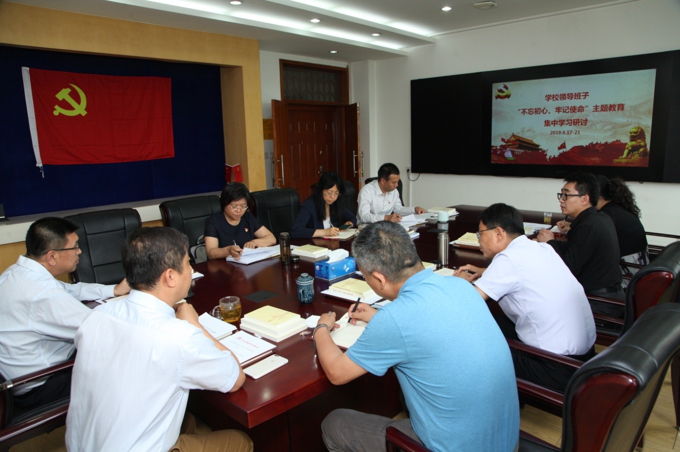 学习期间,学校领导班子成员以饱满的政治热情和良好的精神状态用轮流导读的方式,逐本逐篇、逐字逐句,带着感情、带着激情,读原著、学原文、悟原理,深刻领会了习近平新时代中国特色社会主义思想的精神实质和丰富内涵,真正用以武装头脑、指导实践、推动工作,推动学习往深里走、往心里走、往实里走。通过学习班子成员进一步坚定了对“初心”“使命”的坚守,也更加充分地认识到开展“不忘初心、牢记使命”主题教育的重大意义。