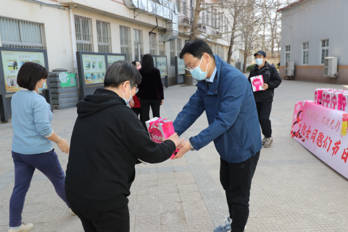3月8号,工会委员早早就来到教工食堂外,精心布置起活动的现场,学校领导和工会委员们,为前来就餐的女教工们一一送上精心准备的节日礼包,希望可以通过这份温馨表达对女教工们的感谢,感谢她们一直为学校的发展辛勤劳动、默默付出。幸福的节日氛围,让每一位女教工在这个特殊的日子里脸上洋溢着幸福的笑容。