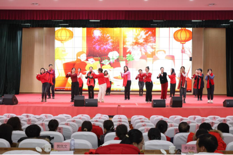 教学管理党支部表演的节目《相亲相爱一条龙》,重温了一年来熟悉的音符和跳动的旋律,带动了全场的气氛。