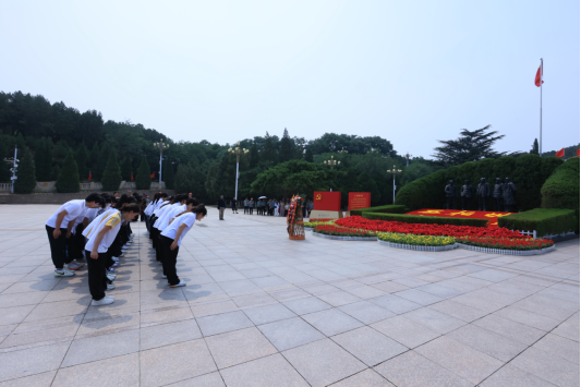 活动伊始,同学们在西柏坡纪念馆广场举办敬献花篮仪式。仪式在庄严的国歌声中开始,全体整队肃立合唱《中华人民共和国国歌》。校国旗仪仗队学生代表向伟人像敬献花圈,校学生会主席团成员整理绶带,表达对革命先烈的敬意与无限追思。随后团委会学生代表带领同学们重温入团誓词。所有团员右手握拳许下青春誓言,表达对前行者的致敬。慷慨激昂的誓言,震撼激励着现场每一名团员。全体同学满怀崇敬之情深鞠躬,表达对革命前辈最深沉的敬意。