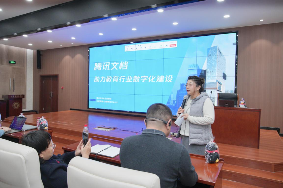 AI时代,为全面推进校园数字化转型,赋能教师高效办公与创新教学方式,11月7日,我校成功举办了“智能提效,AI赋能”——企业微信智能表及AI助手应用专题培训,共有来自三个校区的近80名教师参加培训。 精准赋能:从“人工”到“智能”的转变 在数字时代,掌握先进的生产力工具就是提升核心竞争力。本次培训旨在学习如何玩转企业微信的“智能表”与“AI助手”两个“效率神器”,提升工作效率,更好地投入到教育教学与管理服务工作中。 本次培训特邀腾讯文档教育行业负责人苏建花老师现场授课,同时出席的还有腾讯生态合作伙伴微用科技的技术团队,强大的专家阵容确保了培训的专业性与实用性。 反响热烈:教师盛赞“实用、解渴、想马上用起来!” 培训中,苏建花老师提出:智能表格不是简单的Excel升级,而是一个“会思考的数据库”,并且将智能表格与AI结合使用,系统可以自动理解图片内容、对文本进行分类总结、精准提取关键信息,让数据处理从繁琐的“人工筛选”迈入高效的“智能识别”时代。 现场演示的案例更是为老师们开拓了思路:从学生晚归打卡、资产管理到合同监控,这些原本需要专门系统支持的业务场景,现在只需利用智能表的加持,就能搭建出个性化的管理应用。 培训现场,教师们学习热情高涨,紧跟讲师的思路,并就实际工作中可能遇到的教学资料收集、管理数据分析等问题进行了深入交流。老师们表示,此次培训所介绍的工具,解决了工作中的痛点,也深切感受到技术带来的“减负”与“提效”,未来会持续探索和应用。 展望未来:持续构建“智慧校园”新生态 本次培训不仅是一次技能学习,更是一次数字化理念的普及与升级。未来,学校将继续根据教师们的应用情况,提供个性化的指导与支持,并将围绕企业微信等平台的使用开展系列进阶培训,助力学校教师踏上数字化新征程。
